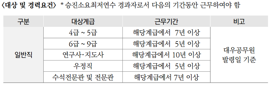 - 6~9급: 해당 계급에서 5년 이상 근무