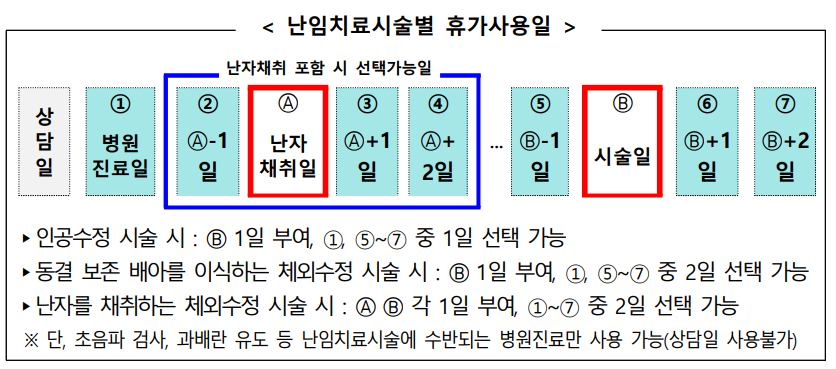 난임휴가는 시술 방식에 따라 사용할 수 있는 일수가 다릅니다.
