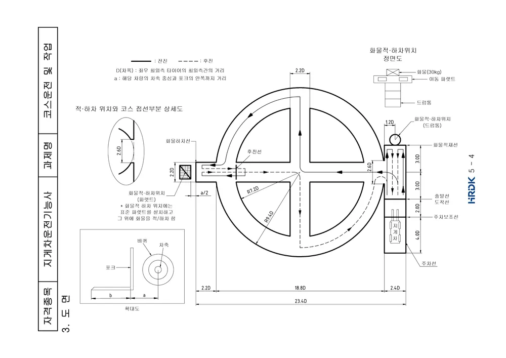 출발, 파렛트 상차, 주행, 하차, 후진, 원위치, 주차까지 제한 시간 안에 완료해야 합니다.